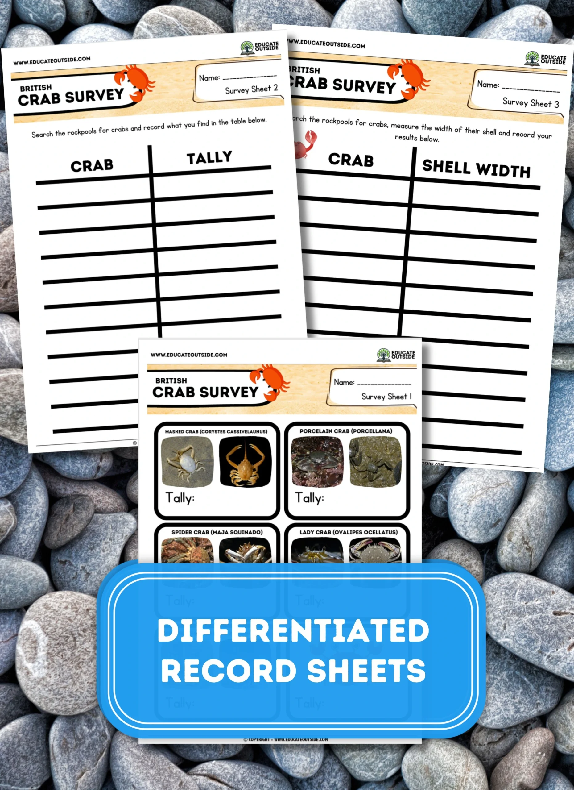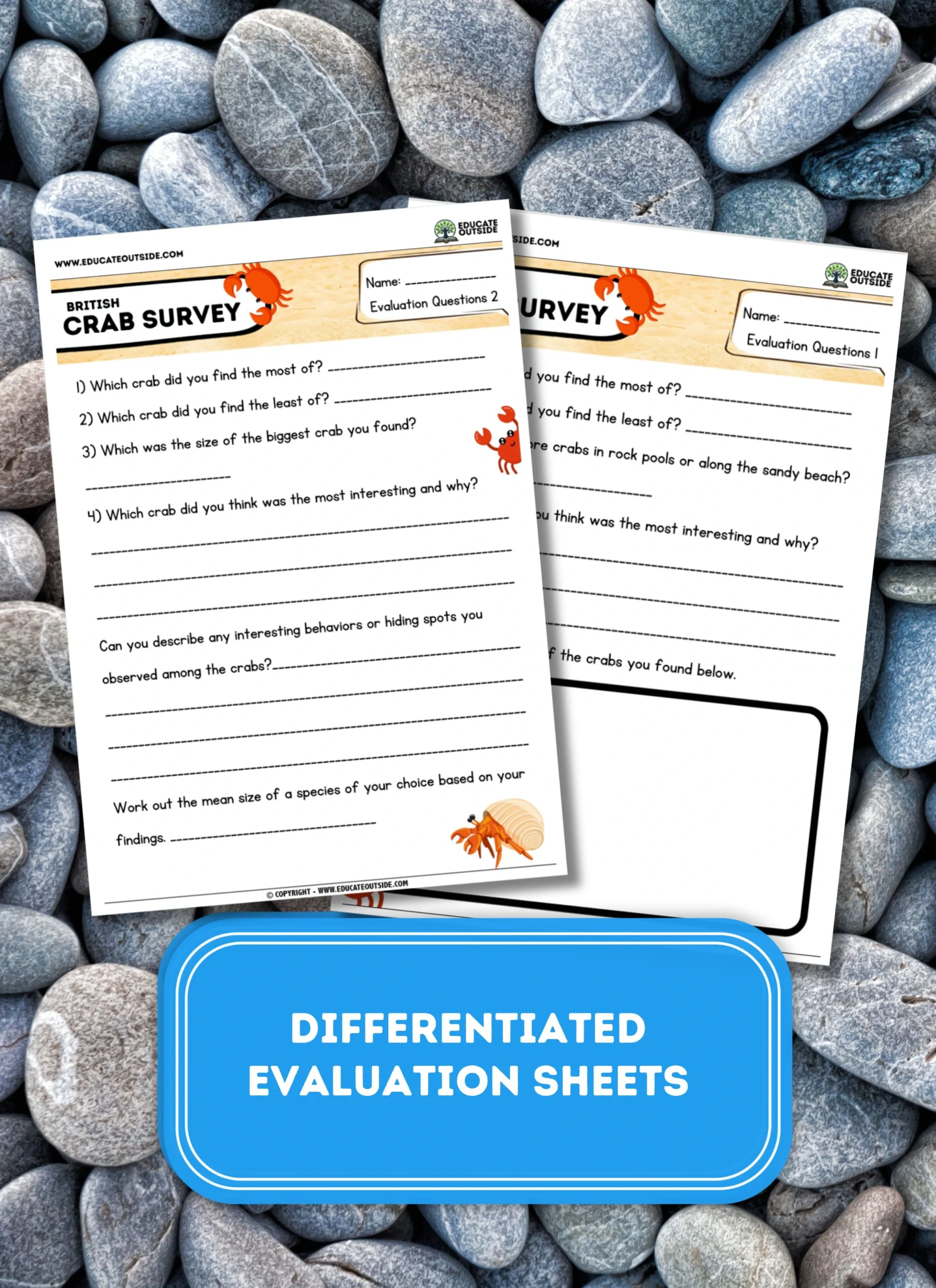 Become marine scientists for the day! In this engaging activity your students will head to the beach to conduct a fun and educational crab survey. They will learn how to handle and measure crabs while contributing to real scientific data collection.