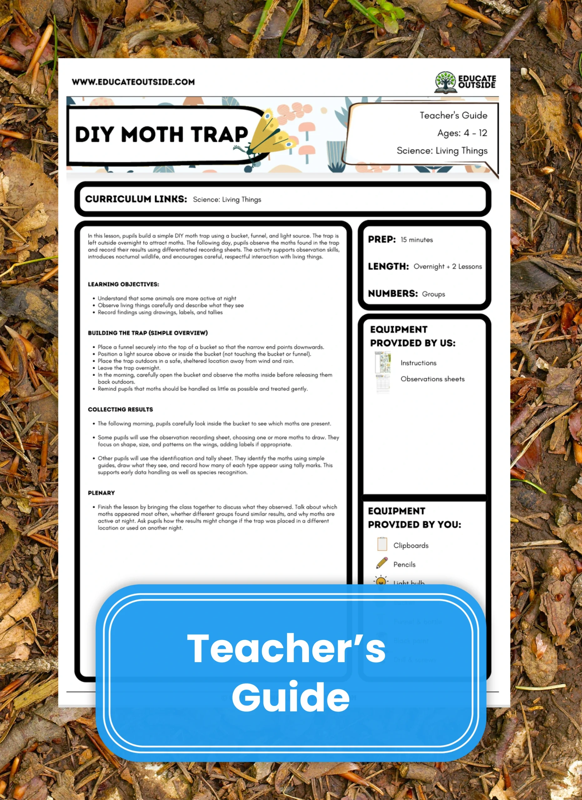Take learning outside (and after dark!) with this hands-on DIY Moth Trap investigation — a complete science activity that gets pupils building, observing, and recording real nocturnal wildlife.