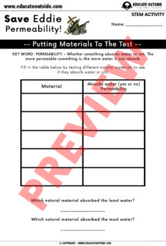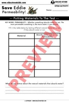 Your class will research the permeability of different natural materials to find out which material will be best to make their water catchers out of. They will then design and create their water catchers before putting it to the test and seeing which catcher can collect the most water and save Eddie!